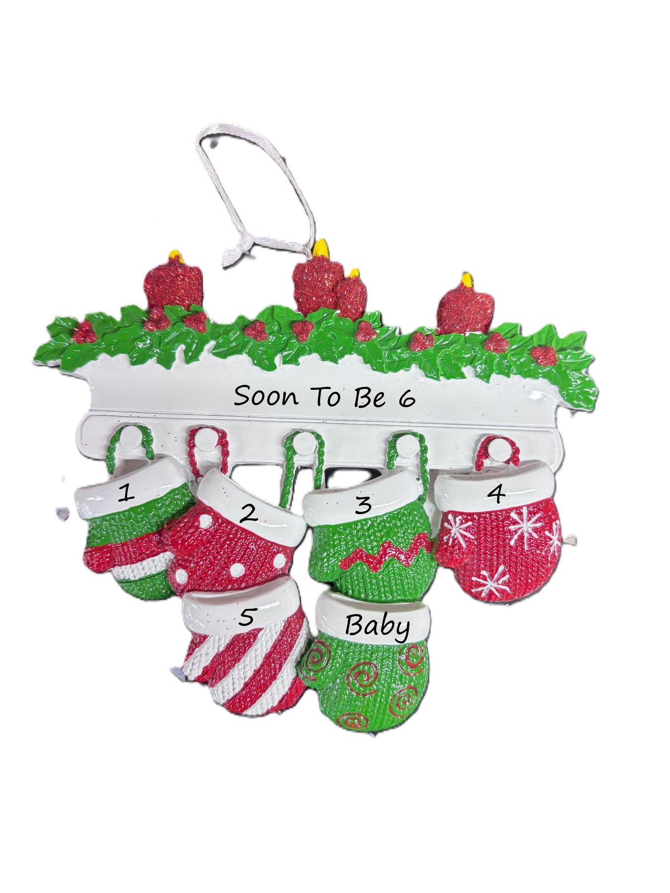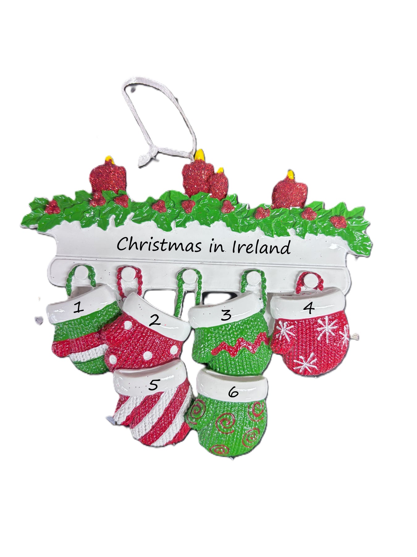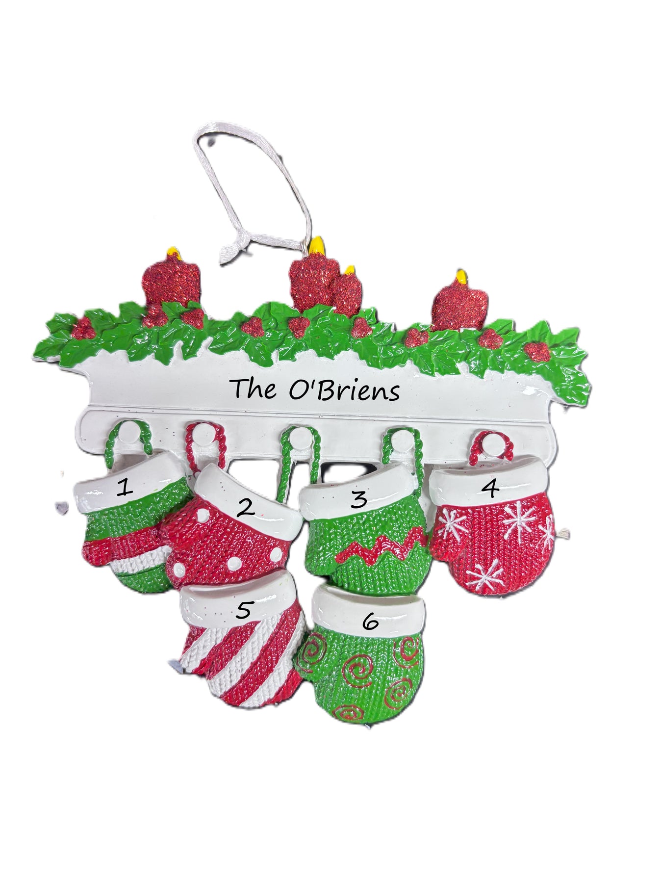 Red & Green Mitt Family 6 Personalised Christmas Ornament