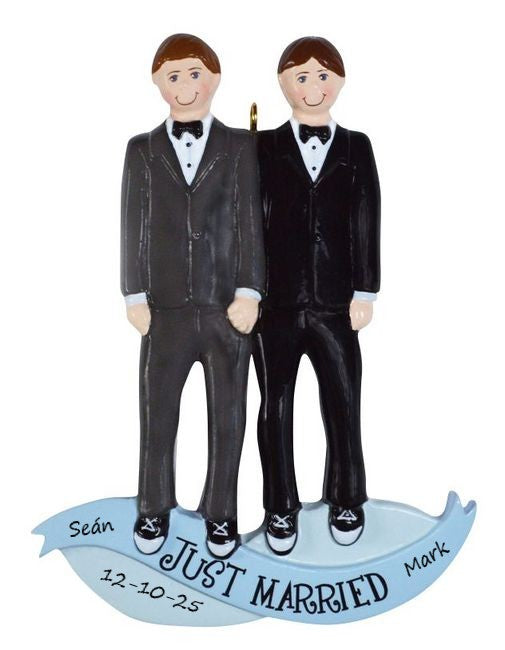 Same Sex Marriage Men Personalised Ornament is the perfect Christmas decoration for those families looking to make Christmas that bit more memorable. This type of ornament is popular with all demographics, particularly those who value a sentimental touch! We guarantee you will have a more memorable Christmas experience!
