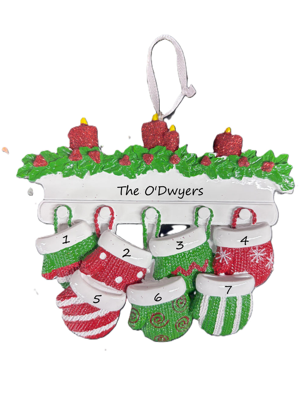 Red & Green Mitt Family 7 Personalised Christmas Ornament