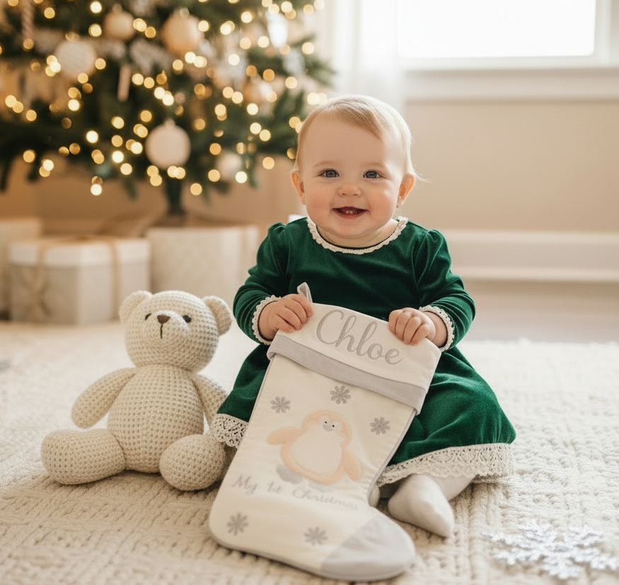 Baby's 1st Christmas Stocking- Pink Penguin Design