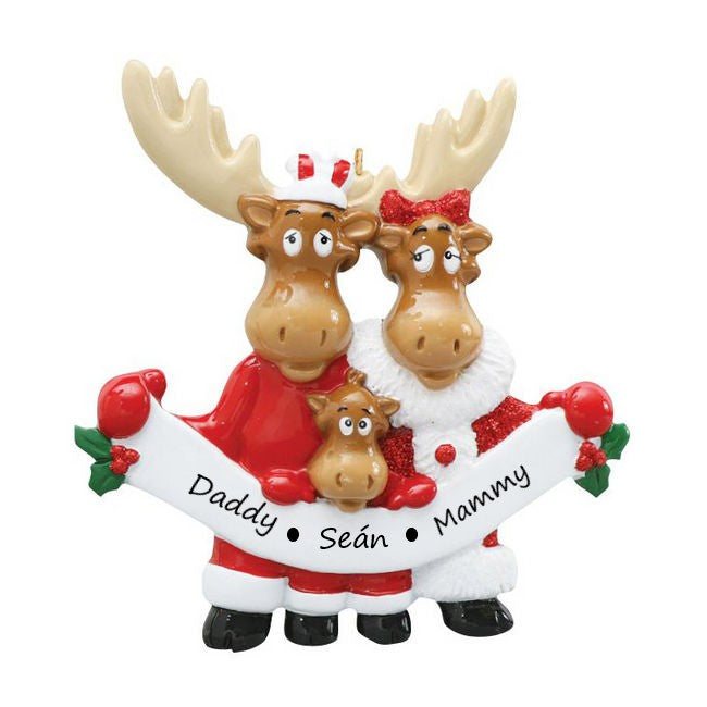 Moose Family 3 Personalised Christmas Ornament